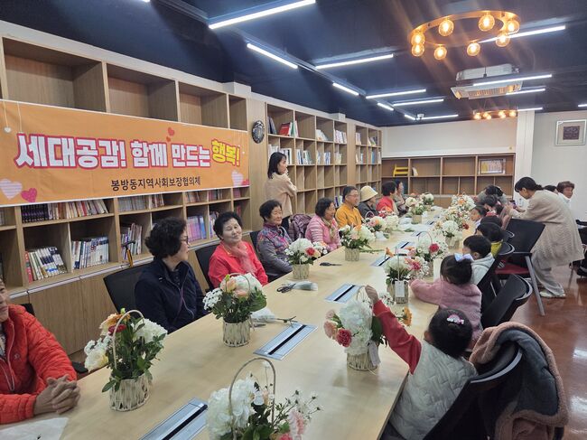 충주 봉방동 지사협, 세대 잇는 체험활동 진행충주 봉방동 지역사회보장협의체(공동위원장 이미애, 정연식)는 28일 봉방동 마을복지사업의 일환으로 세대 간 공감과 소통을 위한‘너나들이 세대공감 꽃꽂이 체험행사’를 진행했다.