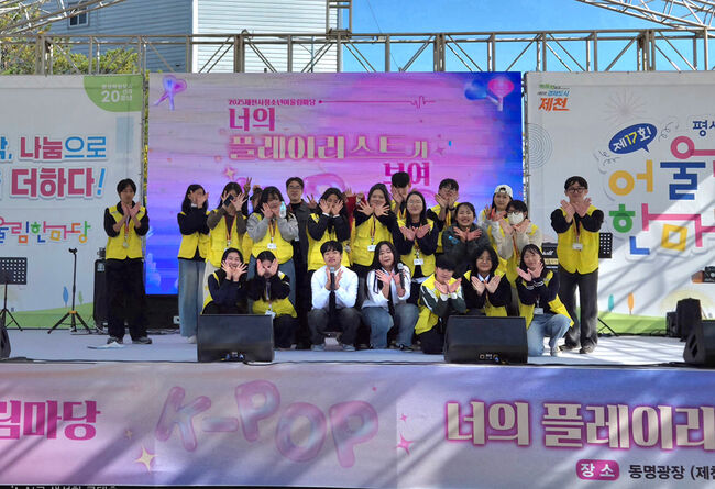 제천청소년문화의집(관장 김태욱)은 지난 1일, 동명광장(제천시 예술의전당)에서 2025 제천시청소년어울림마당 ‘너의 플레이리스트가 보여’를 많은 청소년과 시민들의 참여 속에 성황리에 개최했다.이번 제천시청소년어울림마당은 세계적으로 열풍을 이어가고 있는 K-POP을 주제로, 청소년들이 직접 무대를 기획하고 참여하는 축제의 장으로 꾸며졌다. 무대에서는 청소년들의 열정이 담긴 댄스, 밴드 공연 등 다양한 K-POP 커버 무대가 펼쳐졌으며, 관객들은 뜨거운 환호와 박수로 청소년들의 재능을 응원했다.