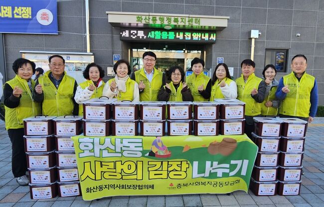 제천시 화산동 지역사회보장협의체, 사랑의 김장 나누기 행사 추진제천시 화산동 지역사회보장협의체(공공위원장 이준희, 민간위원장 김동식)는 지난 11일, 지역 내 어려운 이웃들이 든든한 겨울을 날 수 있도록 ‘사랑의 김장 나누기 행사’를 진행했다.이번 행사는 지역사회보장협의체 연합모금사업의 일환으로 추진되었으며, 총 400만 원 상당의 김장김치 910kg이 관내 저소득층 가구에 전달됐다.
