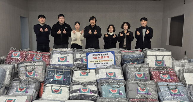 광명전업사, 증평삼보사회복지관에 겨울이불 102채 전달충북 증평군은 광명전업사(대표 임기수)가 29일 증평삼보사회복지관(관장 오종식)에 겨울이불 102채(1000만원 상당)를 전달했다고 밝혔다.기부된 이불은 한파에 취약한 지역 내 저소득 가구와 취약계층에게 지원될 예정이다.