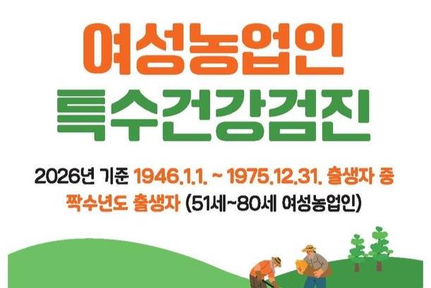 지원 대상은 옹진군에 거주하며 농업경영체에 등록된 짝수년도 출생의 51세부터 80세까지 여성농업인으로, 올해는 총 60명을 대상으로 실시되며, 검진 비용은 1인당 22만 원이며, 이 중 19만8천 원은 보조금으로 지원되고 본인 부담금은 2만2천 원이다. 신청은 농업e지 홈페이지 또는 모바일 앱을 통해 가능하며, 가까운 면사무소를 방문해 신청할 수도 있다.