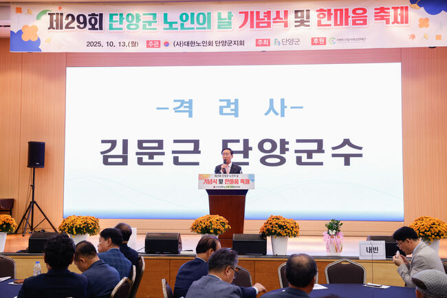 충북 단양군은 지난 13일 소노문 단양 그랜드볼룸홀에서 열린 ‘제29회 노인의 날 기념식 및 한마음 축제’를 성황리에 개최했다고 밝혔다.