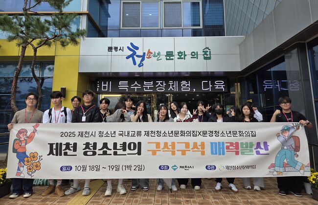 제천청소년문화의집(관장 김태욱)은 지난 10월 18일부터 19일까지 1박 2일간, 문경시청소년문화의집과 함께‘2025 제천시 청소년 국내교류 – 제천 청소년의 구석구석 매력발산’프로그램을 진행하였다.