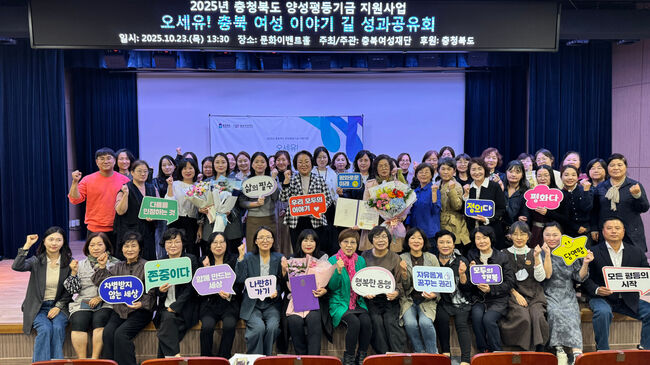이번 성과공유회는 여성친화도시 활성화 유공자 시상식과 충북여성재단 주관으로 추진한 여성친화적 관광 콘텐츠를 기획·발굴하는 사업인 ‘오세유! 충북 여성 이야기 길’ 발표하는 자리로, 도내 7개 여성친화도시 시·군참여단이 참여해 최종 성과를 공유했다.